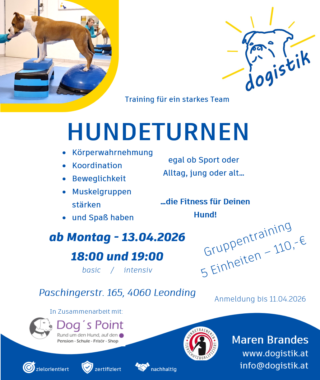 | Hundeturnen Intensiv – Gruppe | ab 13.04.2026 |